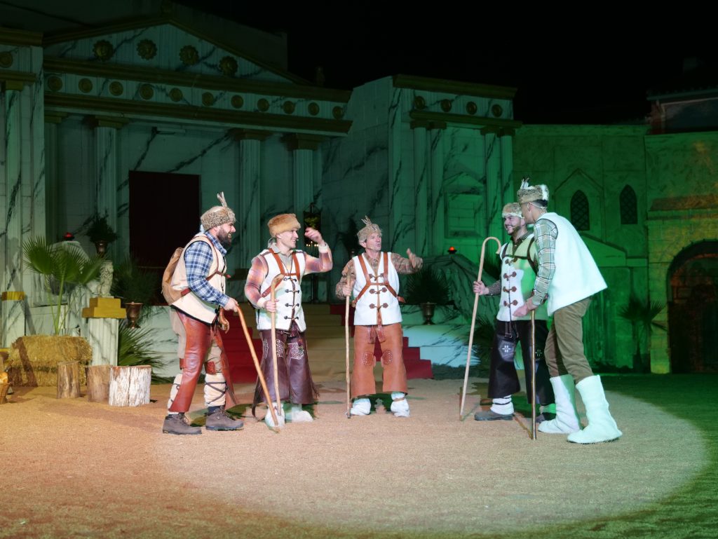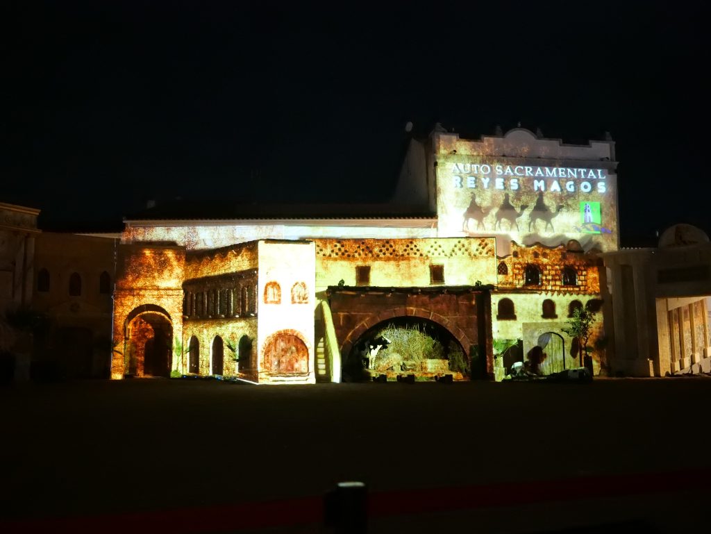 Tras un videomapping que se proyecta también en los primeros instantes sobre el decorado, con música épica, se desarrolla la representación, sucediéndose los villancicos cantados en directo por la Coral de la Peña de los Reyes Magos y que anticipan las escenas.