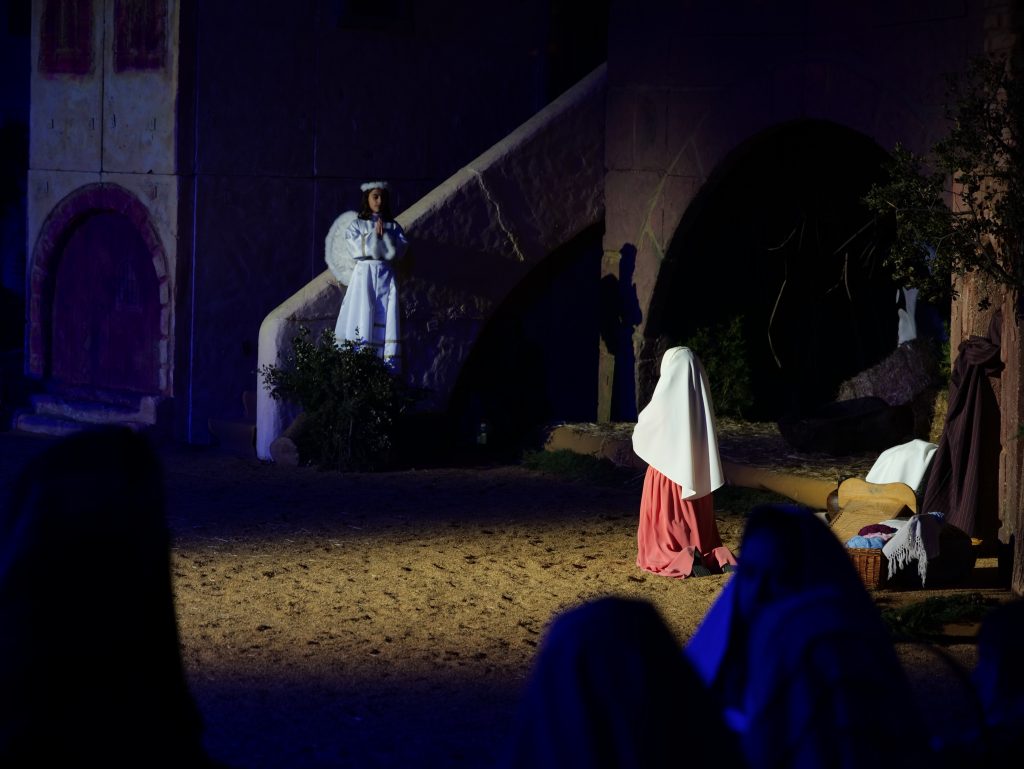 Dos horas apasionantes en las que se narra la historia del nacimiento de Jesús, con la Anunciación y el edicto de empadronamiento de los judíos, la Virgen y San José pidiendo posada, los pastores en su majada, el nacimiento, la aparición del Ángel de la estrella y la adoración al Mesías por los pastores y por los Reyes Magos.