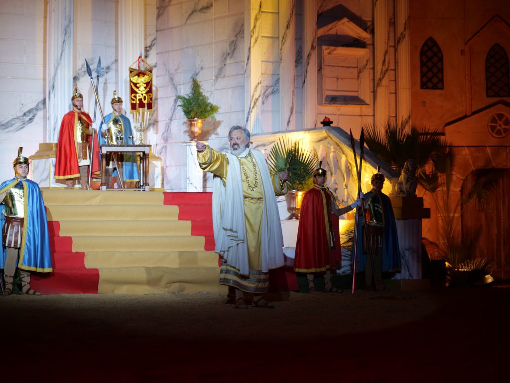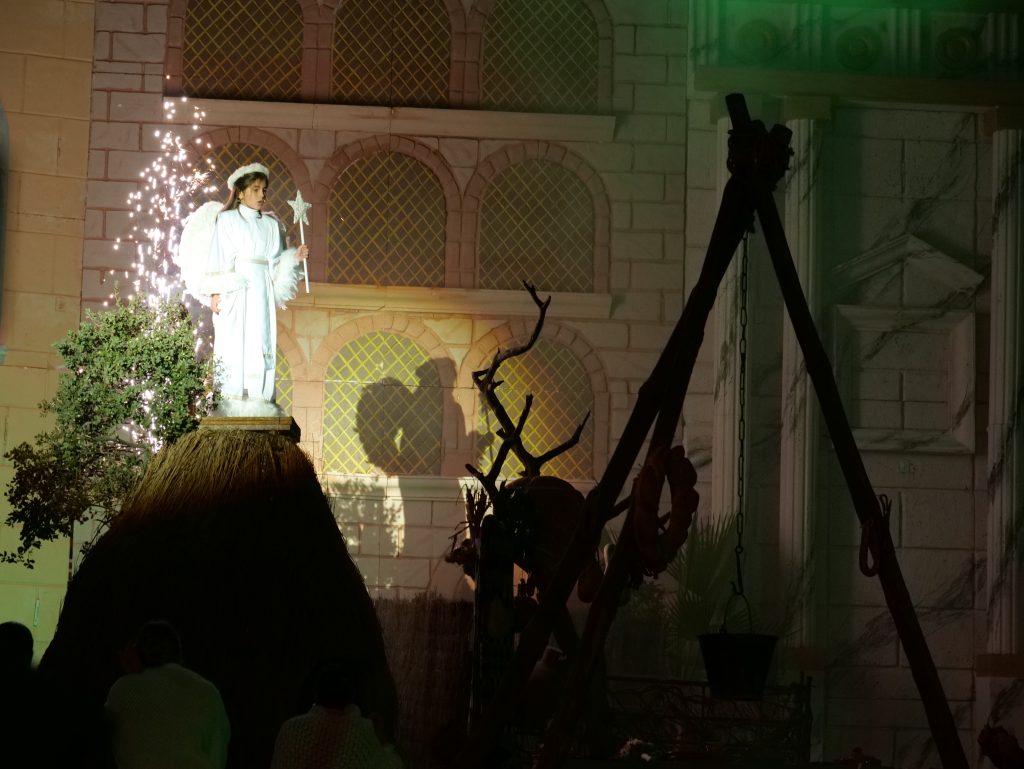 Con unos efectos sonoros y de luces que engrandecen la puesta en escena, los espectadores pudieron disfrutar de la aparición de los romanos, algunos a caballo incluso en carro como momento previo a la Anunciación del Ángel a la Virgen María que traerá al mundo a Jesús, respondiendo la Virgen: «Mi voluntad es la vuestra, que es a su vez la del Señor».